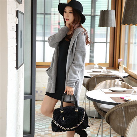 秋冬韩国新品宽松连帽中长款加厚针织毛衣外套